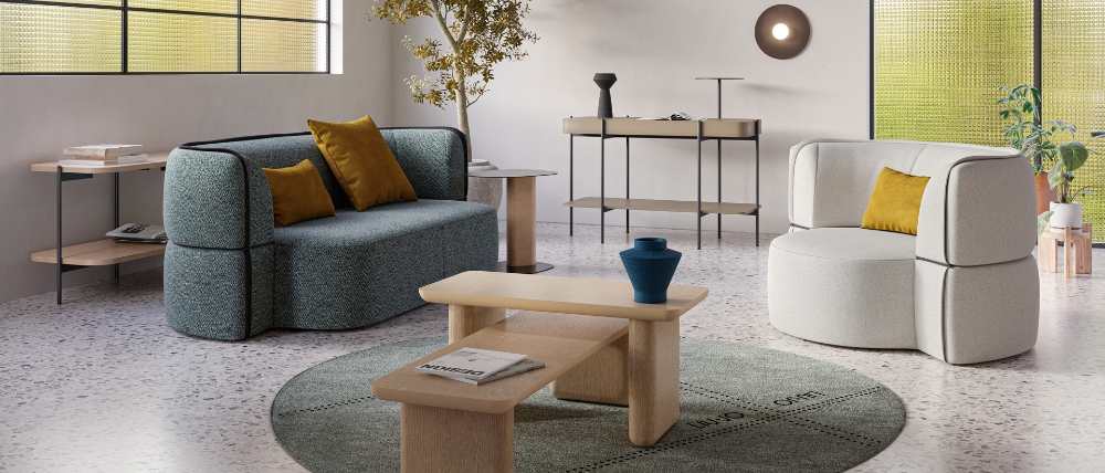 Simena Sectional is one of our contemporary relaxing sectional sofas with very comfortable removable cushions filled with down and feather. This comfort-meets-style sofa is paired up nicely with our Madison Plywood lounge chairs and the Ripples coffee table. The Ripples coffee table is a multi-functional coffee table that is modular and can be configured in different shapes, making it a continuously interesting piece in any living room.